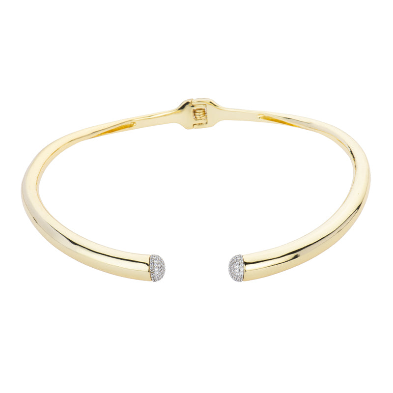 Collana a fascia tubolare in brass dorato con calotte centrali in pavé di zirconi clear e chiusura a scatto.