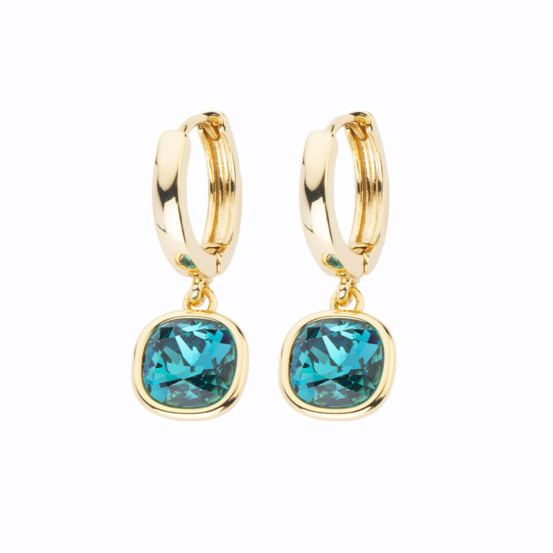 Questi orecchini a creola in brass liscio sono impreziositi da un pendente carré in cristallo colorato: per un effetto elegante, luminoso e contemporaneo.